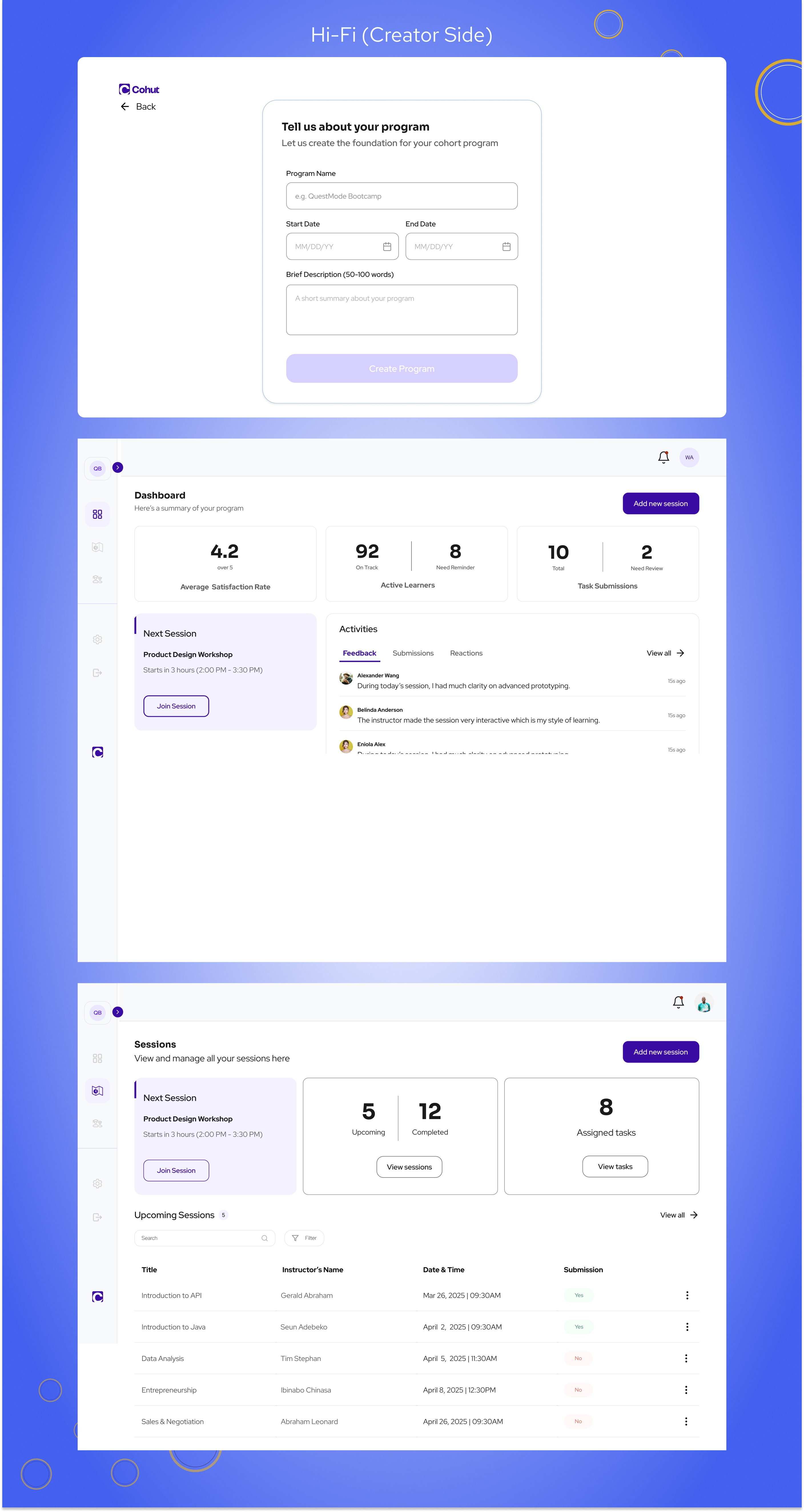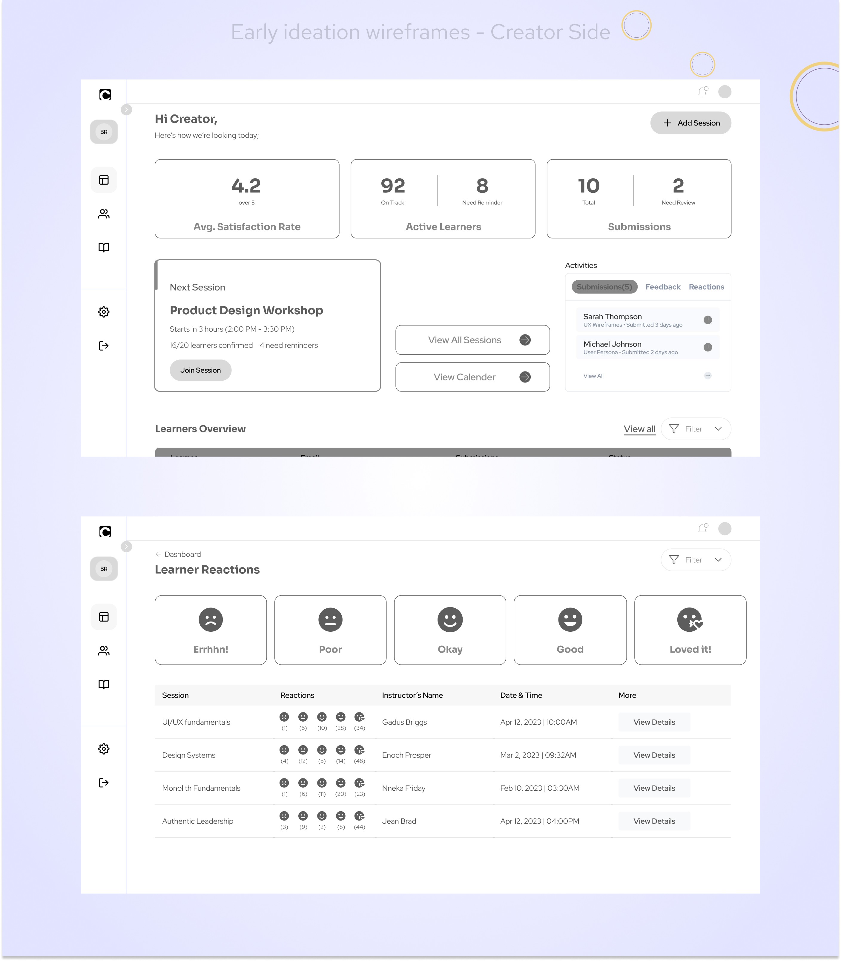 Designed key screens for both Creator and Learner dashboards